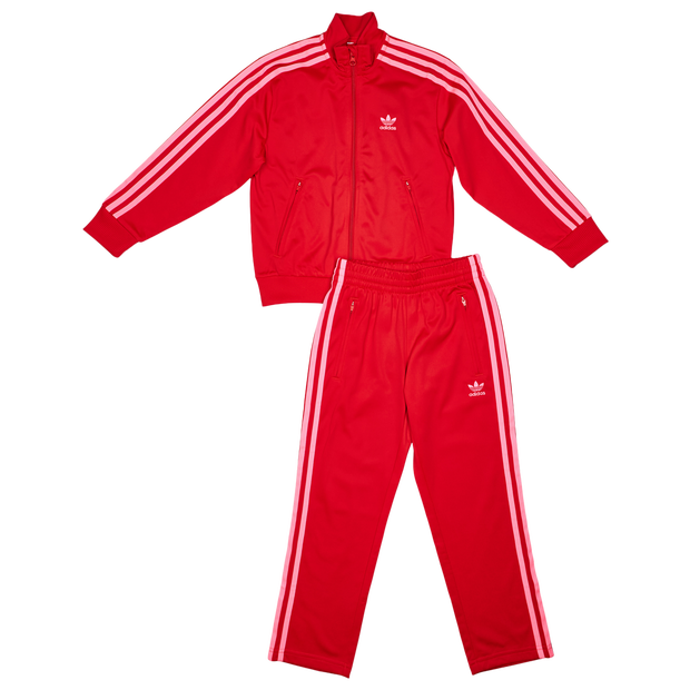 Your little one will be as bold as fire in this kids' iconic track suit. Inspired by adidas heritage yet fresh for today, it features 3-Stripes and a Trefoil logo on both the track top and pants. Ribbed details and a stand-up collar put the finishing touches on the classic silhouette. This product is made with 100% recycled materials. By reusing materials that have already been created, we help to reduce waste and our reliance on finite resources and reduce the footprint of the products we make. Loose-fit top and regular-fit pants. Top: Full zip with stand-up collar. 100% polyester (recycled). Top and pants: Side pockets. Top: Ribbed cuffs and hem.
